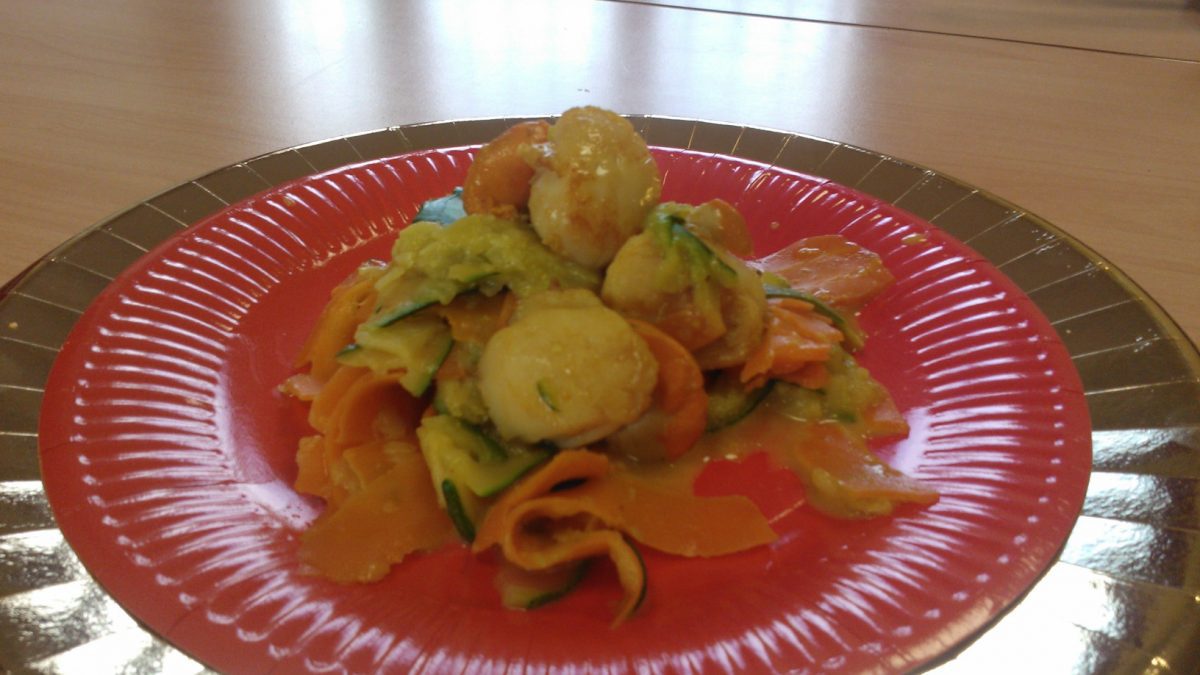 - Mélanger la sauce y mettre les tagliatelles de légumes et les st jacques 5 minutes.